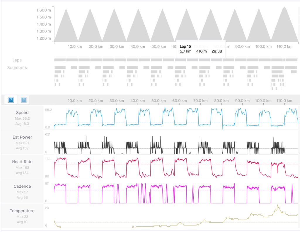 Así que en octubre decidí hacer una prueba: Half Everesting en La Masella. Serían 11 subidas (de las 22 del reto). Empecé con retraso, por lo que hice las subidas más rápido de lo previsto (error), y en la subida 9 estaba bastante tocado. La décima fui muy lento y se me echó el tiempo encima por lo que decidí parar y no completar la última.